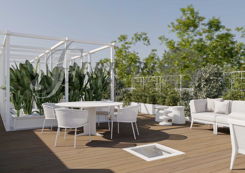 Comodi salotti sanno dialogare con l’architettura circostante e, creando con i loro infissi un legame visivo tra interno ed esterno, evocano il genio delle abitazioni d’artista tipiche dell’area, nonché una sensazione di profonda appartenenza allo spirito di Milano.